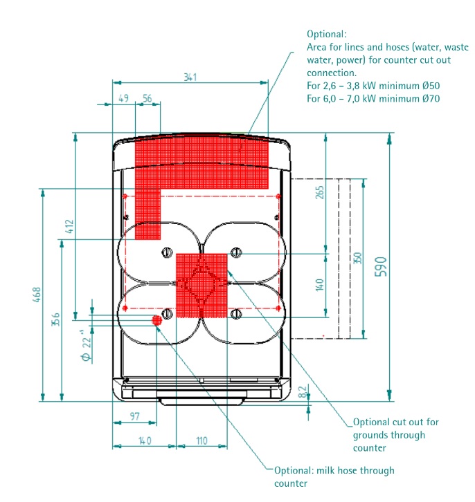 - Bean or ground coffee feed depending on chosen configuration